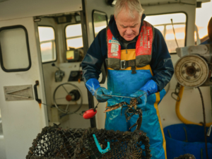 Restrictions on fishing have changed to protect dwindling species and their habitats. The minimum landing size for lobsters has increased, giving them time to spawn three times before being caught. Catching berried hens – female lobsters carrying eggs – is illegal. These will be put back in the water with a notch in their tail; this will take several months to grow out, by which time they can be caught legitimately.